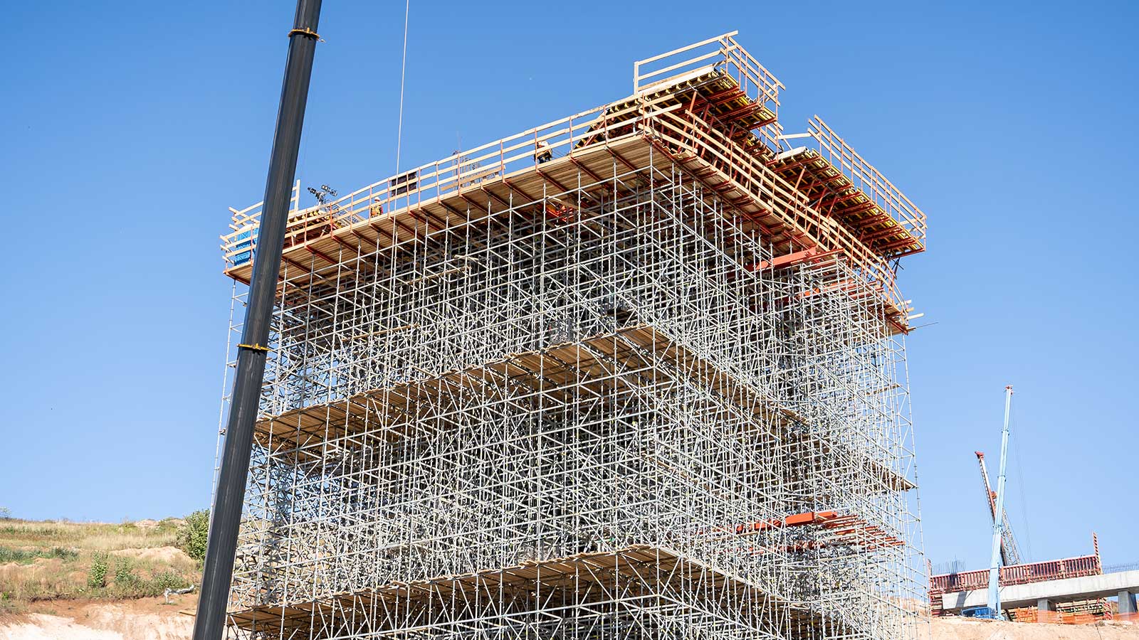 Түбірлі блок қалыптары үшін тірек құрылыс ормандары ретінде PERI UP жүйесі қолданылды. Толық статикалық есептеулер жүргізілді, бұл тіреуіш элементтердің ең аз санын пайдалануға мүмкіндік берді.
