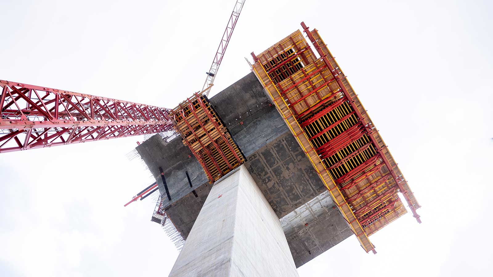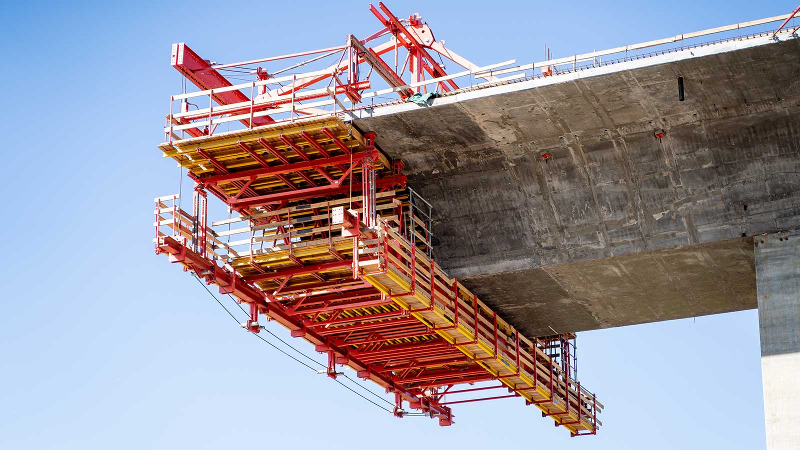 Көпірдің өтпелі құрылымын салу үшін VBC теңгерілген бетондау жүйесі қолданылды.