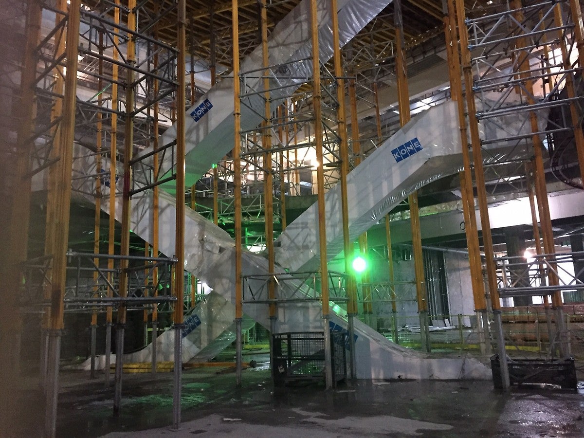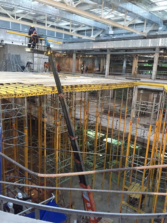 MULTIPROP тіректерінің негізінде жасалған тірек мұнаралары, PERI UP Flex жүйесінде жасалған жұмыс платформаларын орнатуға негіз болды.
