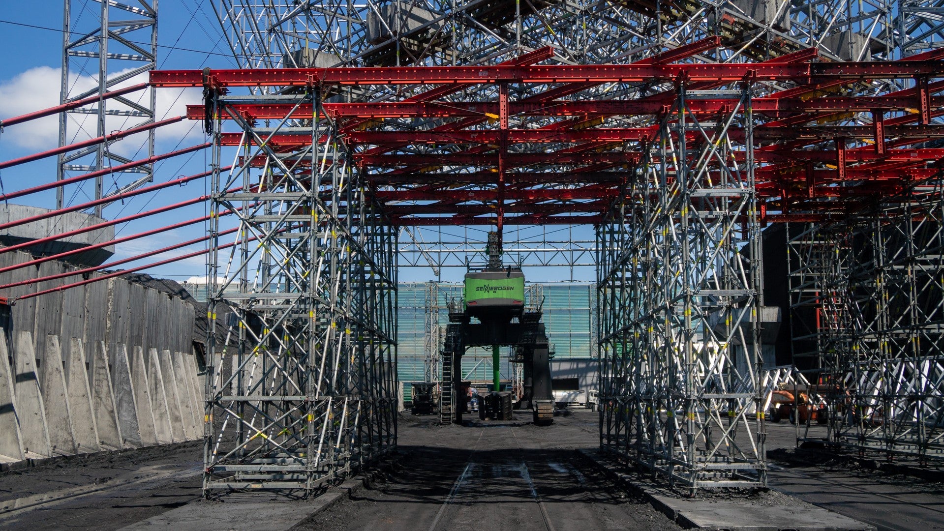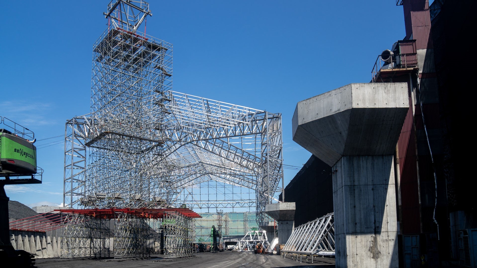 Жабық алюминий құрылымды орнату үшін биіктігі 33,47 метр болатын орталық қосалқы мұнара қажет болды. Бұл мұнараға түсетін жүктемелер өте жоғары болды: тік – 170 кН-ға дейін, көлденең – 27 кН-ға дейін, сондай-ақ жел жүктемесі.Осы мақсатта PERI компаниясы 70 тоннадан астам PERI UP Rosett модульдік құрылыс ормандарын ұсынды. Бұл құрылымдар нысан параметрлеріне толық сәйкес келіп, жоғары қауіпсіздік деңгейін қамтамасыз етті.