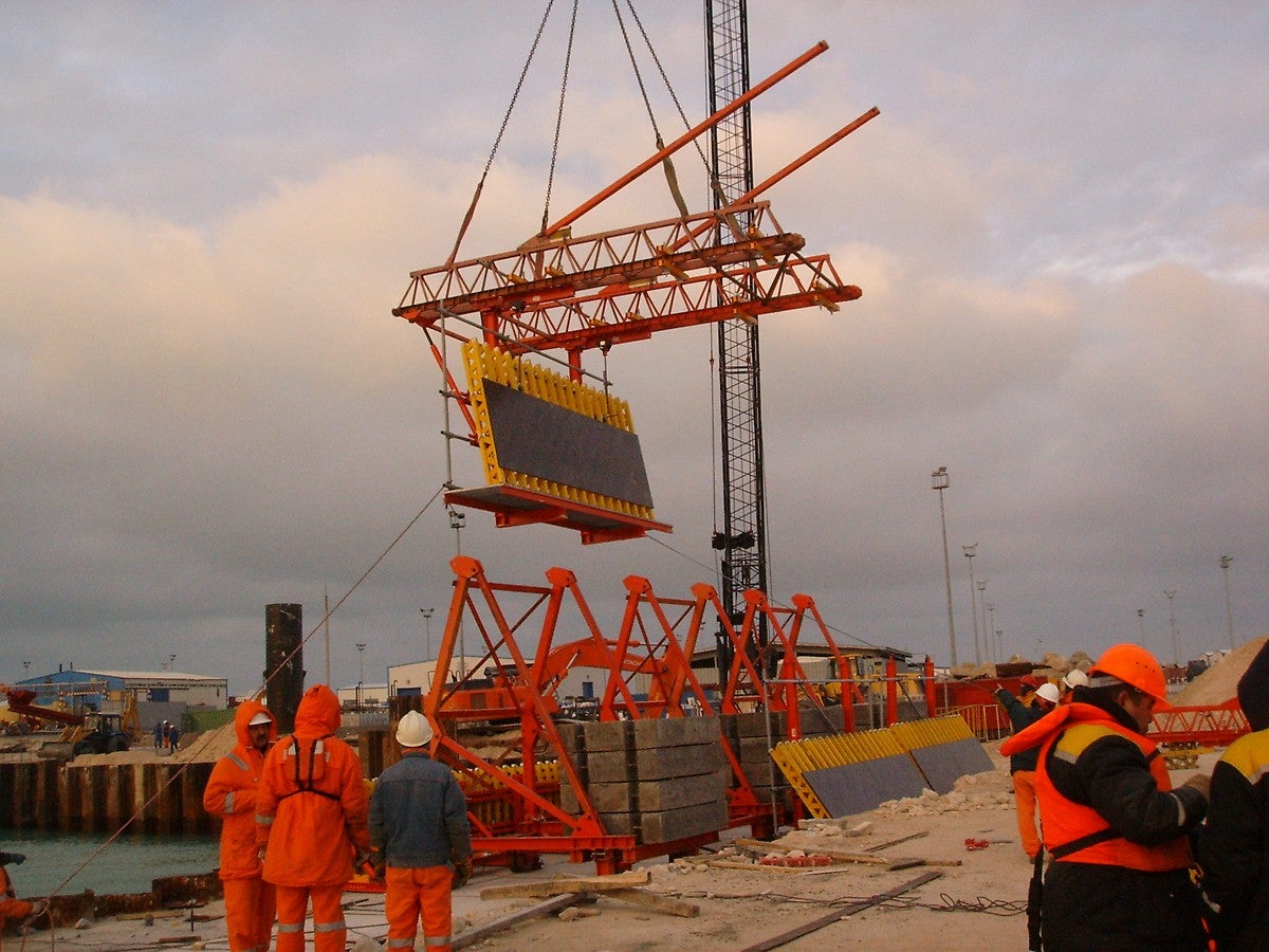 Причал для нефтеналивных танкеров с бетонными бортами, формирующими край плиты моста. Общая длина моста 1,8 км.